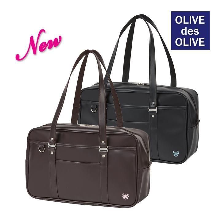 オリーブデオリーブスクール合皮バッグ ラージサイズ ロゴ刺繍