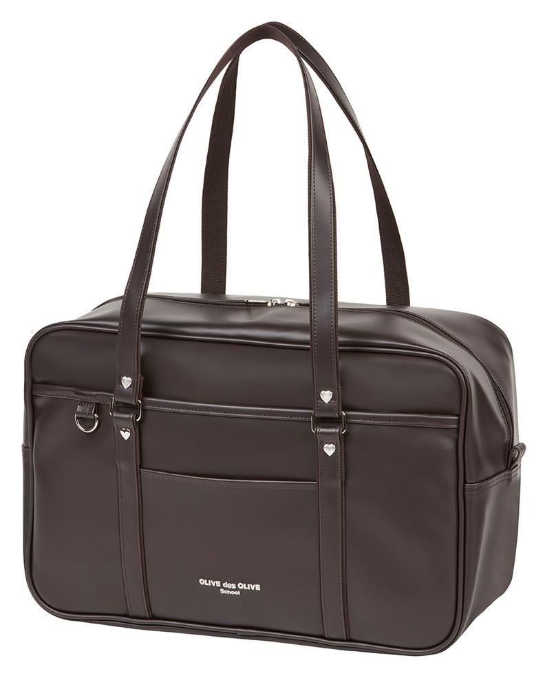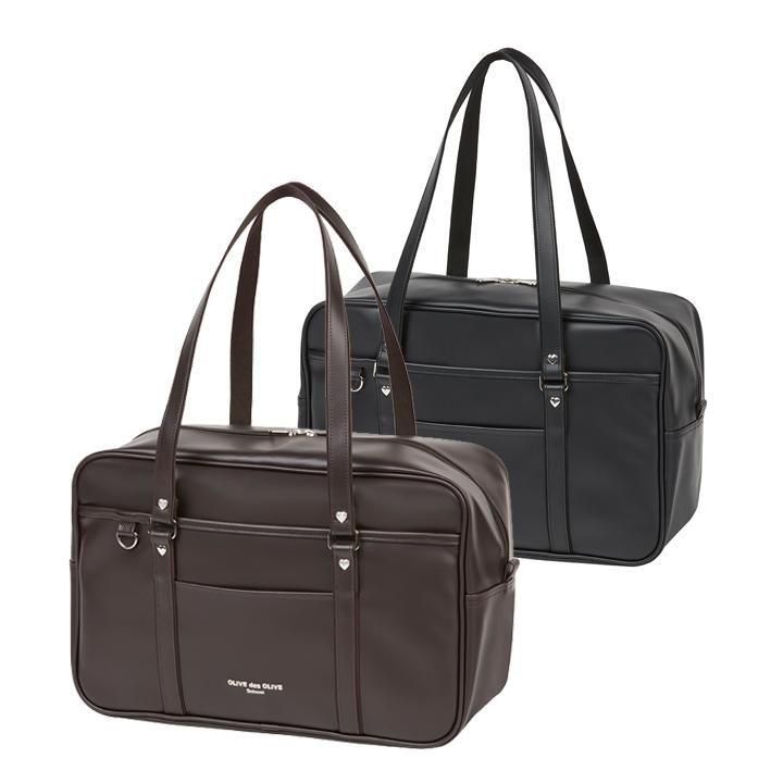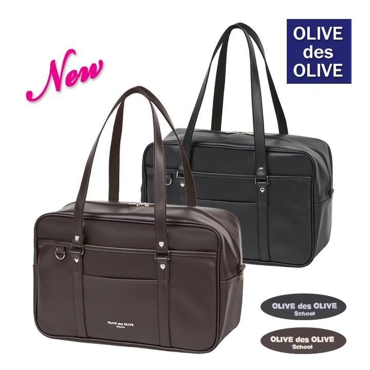 オリーブデオリーブスクール合皮バッグ ラージサイズ ロゴ刺繍